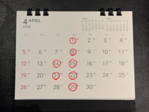 4月店舗営業日をお知らせいたします。